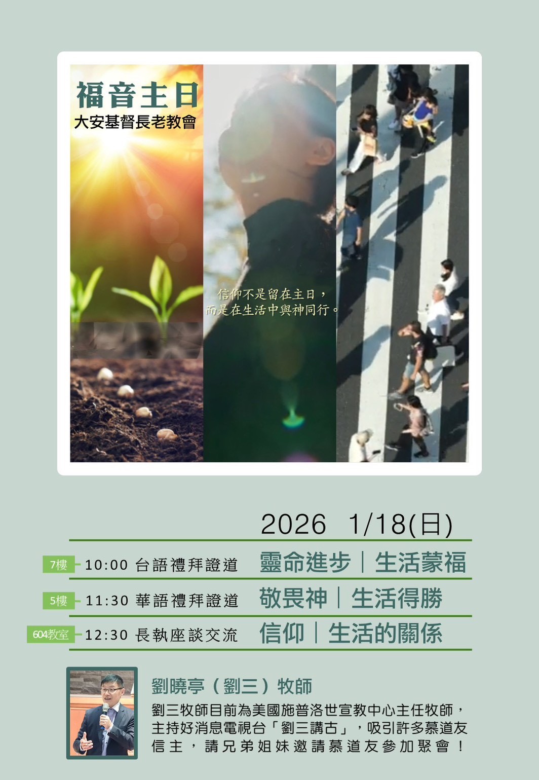 1/18週日邀請劉曉亭(劉三)牧師分別於