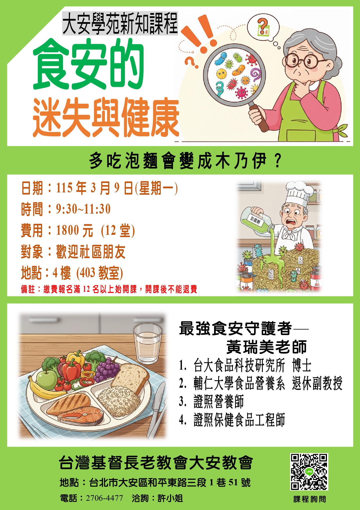 規劃了整整 12 堂 精彩的食安系列課程。